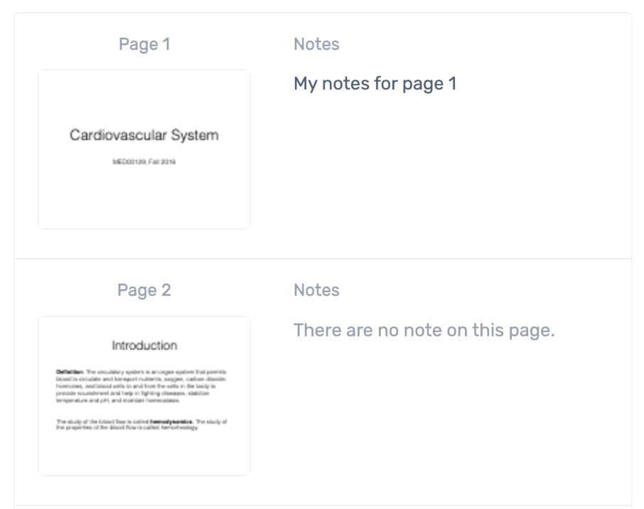 You can also open the "Thumbnails" view by clicking on the small magnifying glass icon or via `Menu > View > Thumbnails`. This view gives you an overview of the document with a thumbnail for each page, and allows you to search by keyword both in the notes and in the course material.