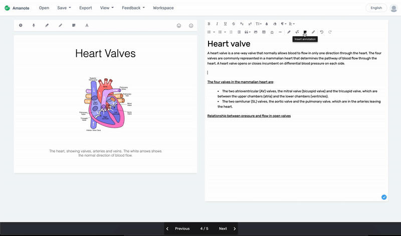 The post-it icon is one of the most popular features used by Amanote users, enabling links to be created between the course material and the note-taking area. A numbered dot can be freely placed on the course material page to add clean, structured notes for this part.