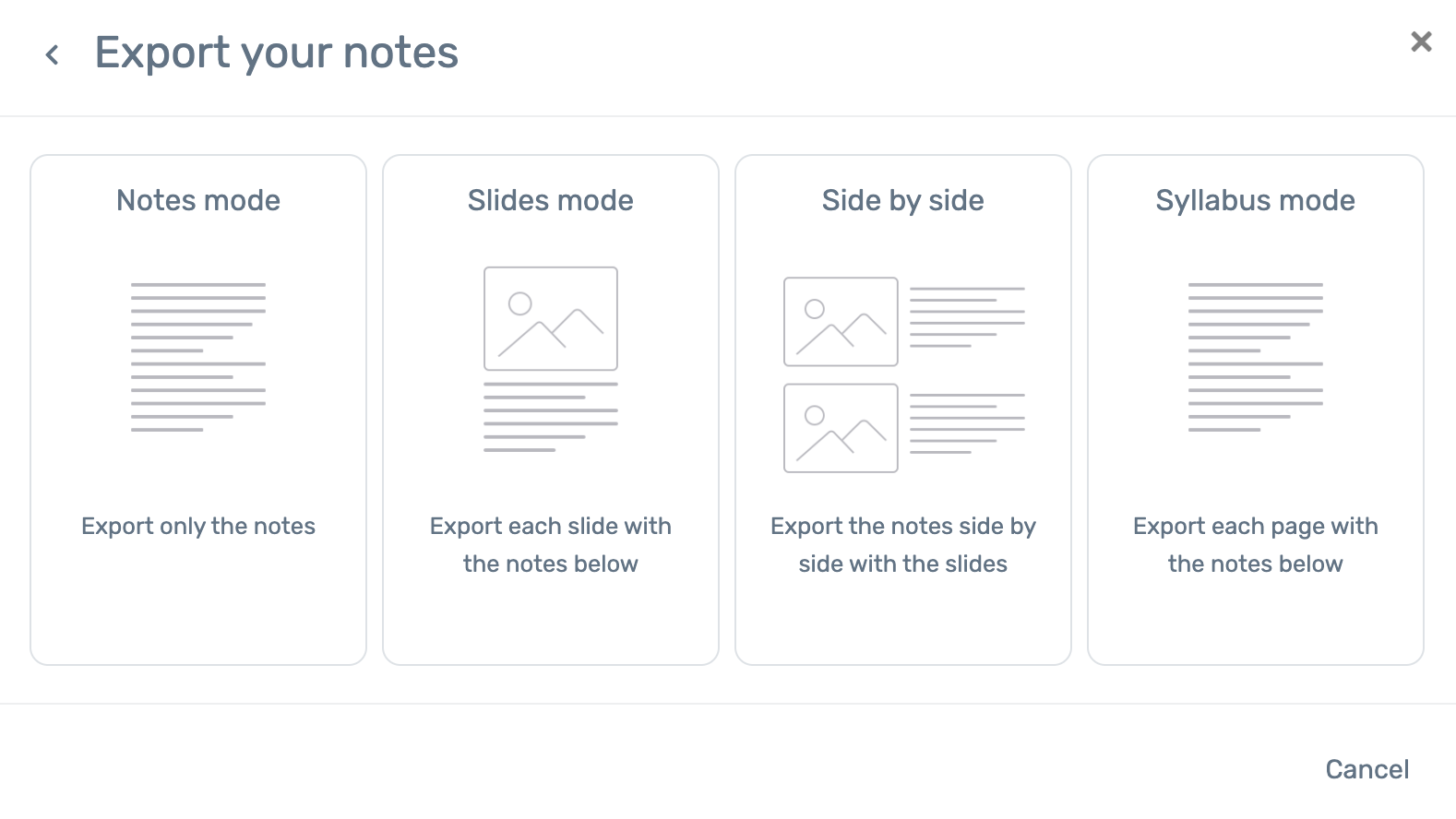 When exporting to PDF, several layout modes are available.