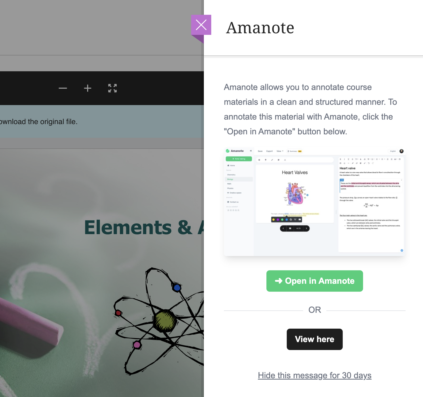 Facendo clic su "Annota", Amanote si aprirà e il supporto del corso automaticamente caricato nella sua interfaccia.